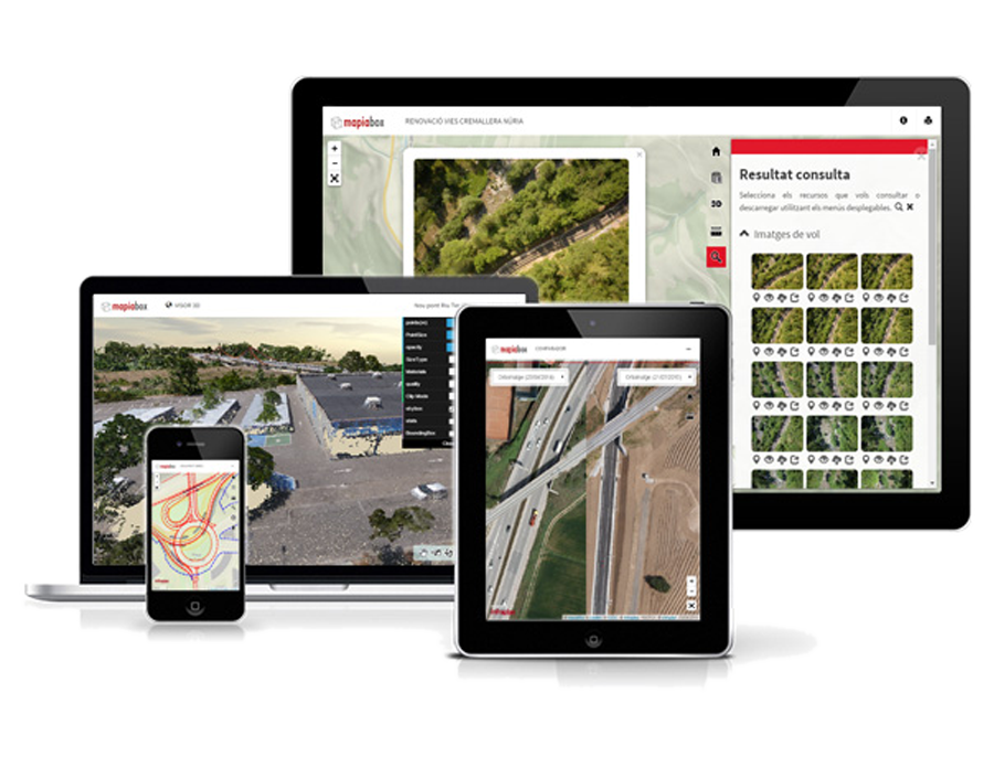 Utilitza el visor/mapa online de l'aplicació de seguiment per veure l'avanç del projecte, àmbits, recursos geospacials, panoràmiques, núvols de punts, 3D, ...